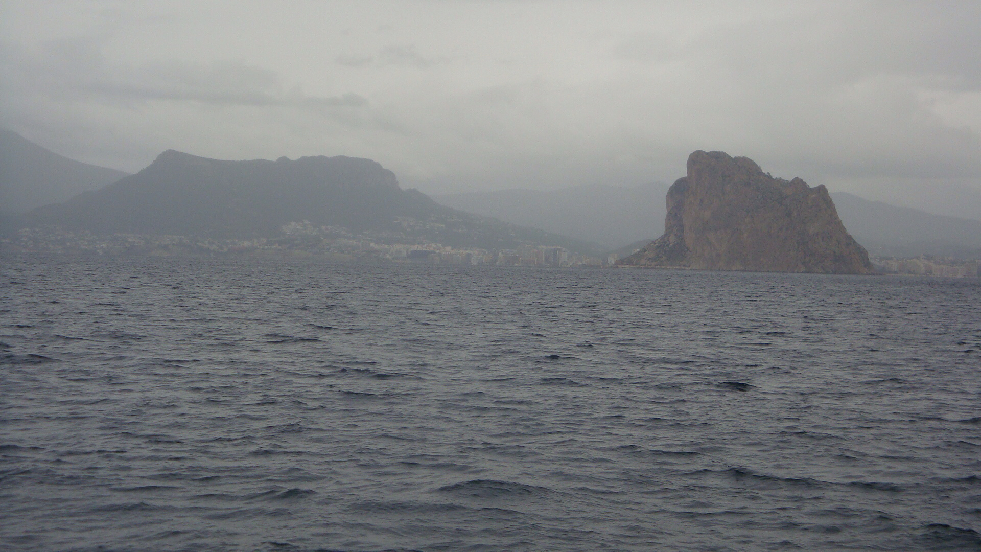 Moving right along we took advantage of a southerly blow to head towards Gibraltar. It's a little gloomy out there, but the wind and seas are going our way.